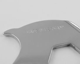 PAINT CAN OPENER NO. 7292-E Measure / Material:	approx. 13,2 cm, stainless steel Functions:			paint can opener, 3 different openers for paint cans,  10 mm wrench, ruler with cm or inch, bottle opener   MADE IN SOLINGEN/GERMANY back back forward forward Contact Legal Notice Privacy Policy DUISBERG production